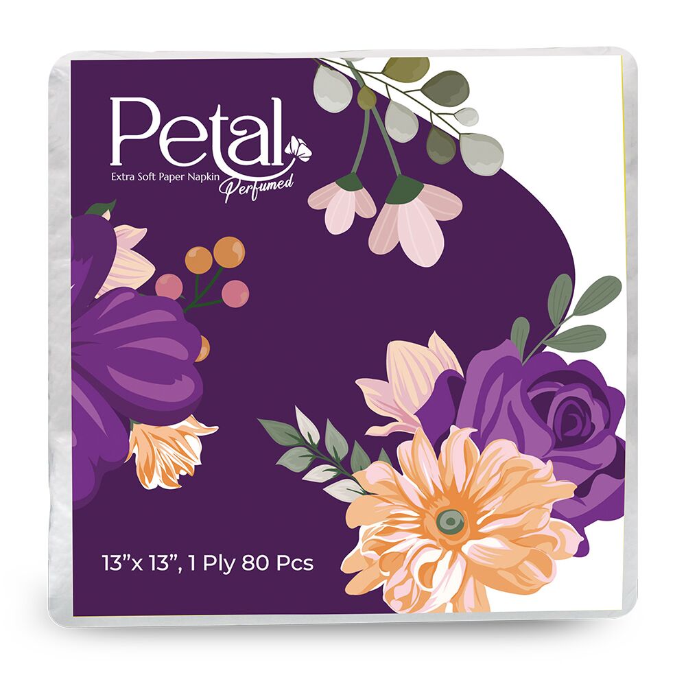Petal Paper Napkin Perfumed 80 Sheets × 1 Ply is a high-quality soft paper napkin in Bangladesh, designed for freshness and hygiene. These perfumed tissue napkins are lightly scented, gentle on skin, and perfect for daily dining. Strong yet soft, this compact 1 ply napkin is ideal as everyday table tissue for homes, restaurants, or offices—adding cleanliness and a touch of fragrance to every meal. Best Tissu paper in Bangladesh.